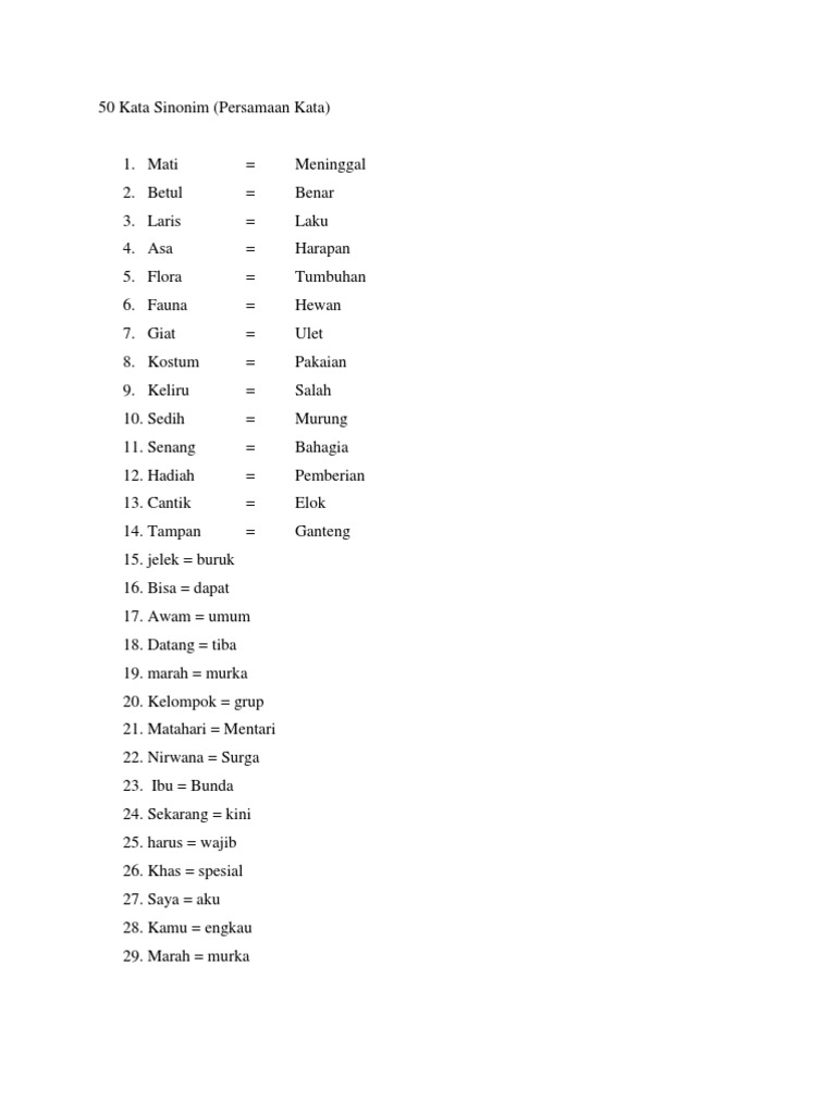 Sebutkan 50 Kata Sinonim Dan 50 Kata Antonim Brainly Co Id